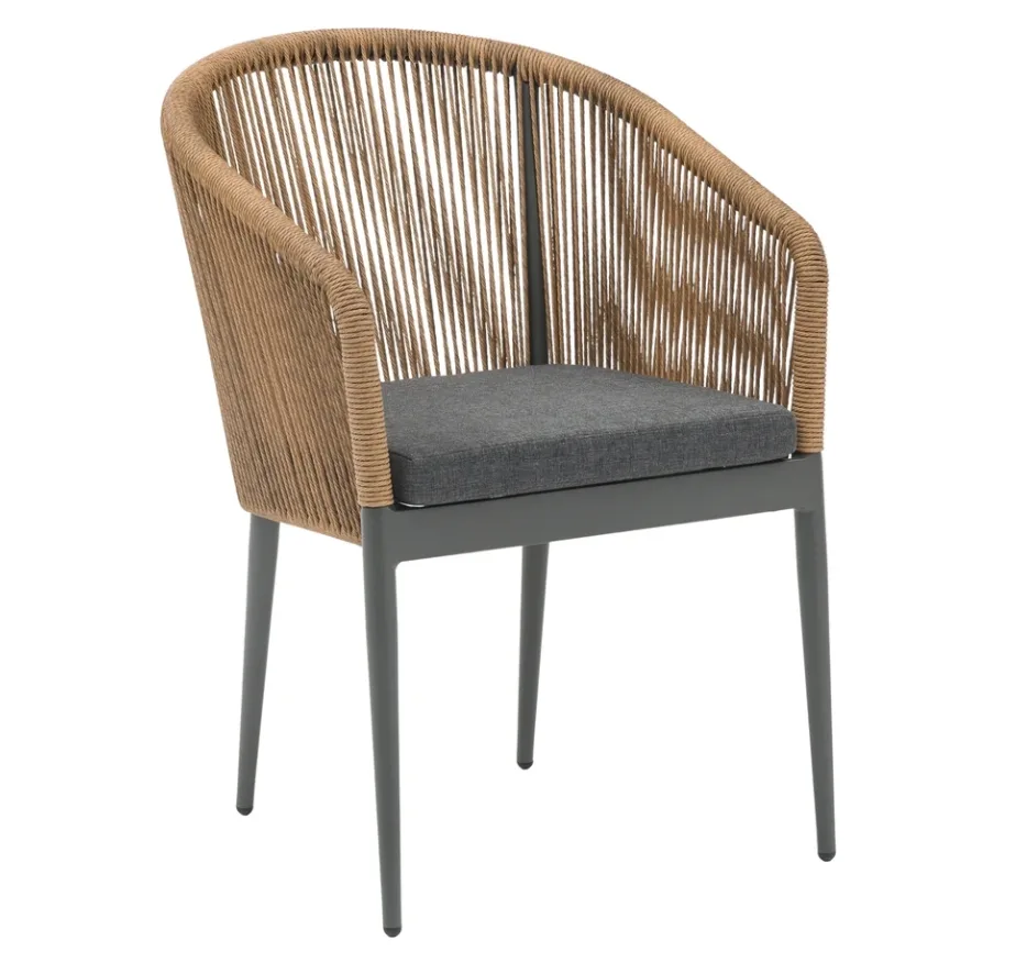 Az Amigo szék kialakítása egyszerre friss, karakteres és jól kombinálható. Az alumínium váz és a textilköteles háttámla könnyed, modern összhatást teremt, amely különböző kültéri környezetekhez is könnyen illeszkedik.