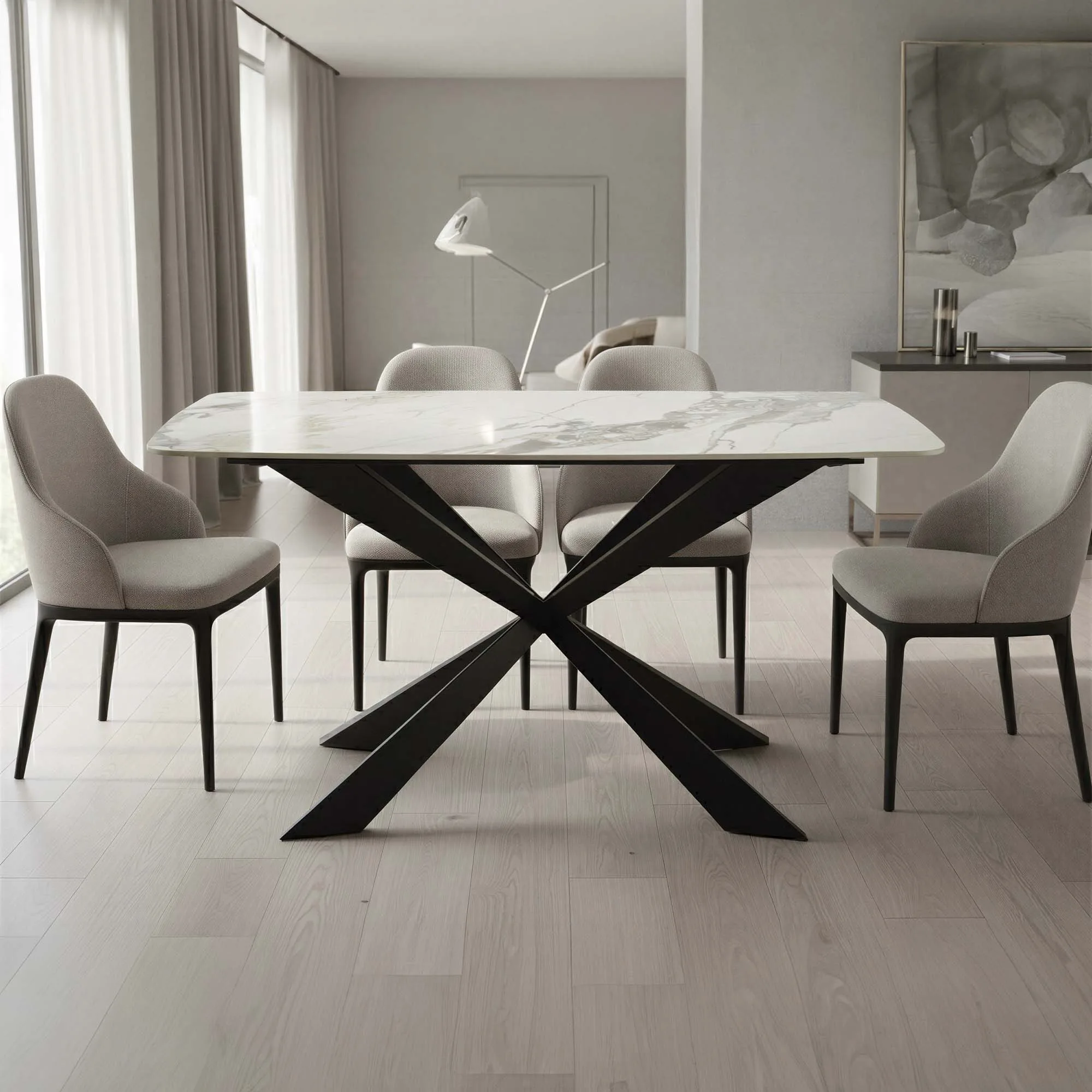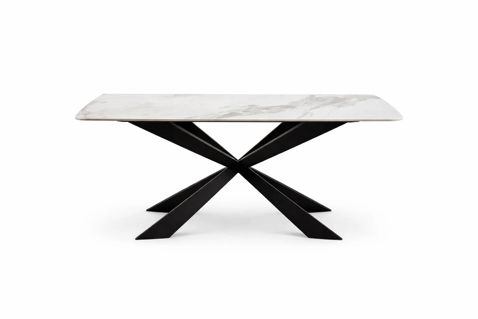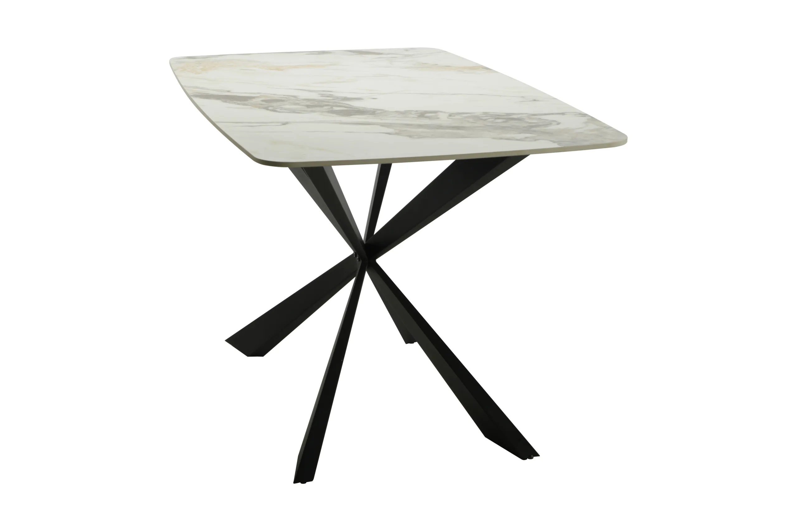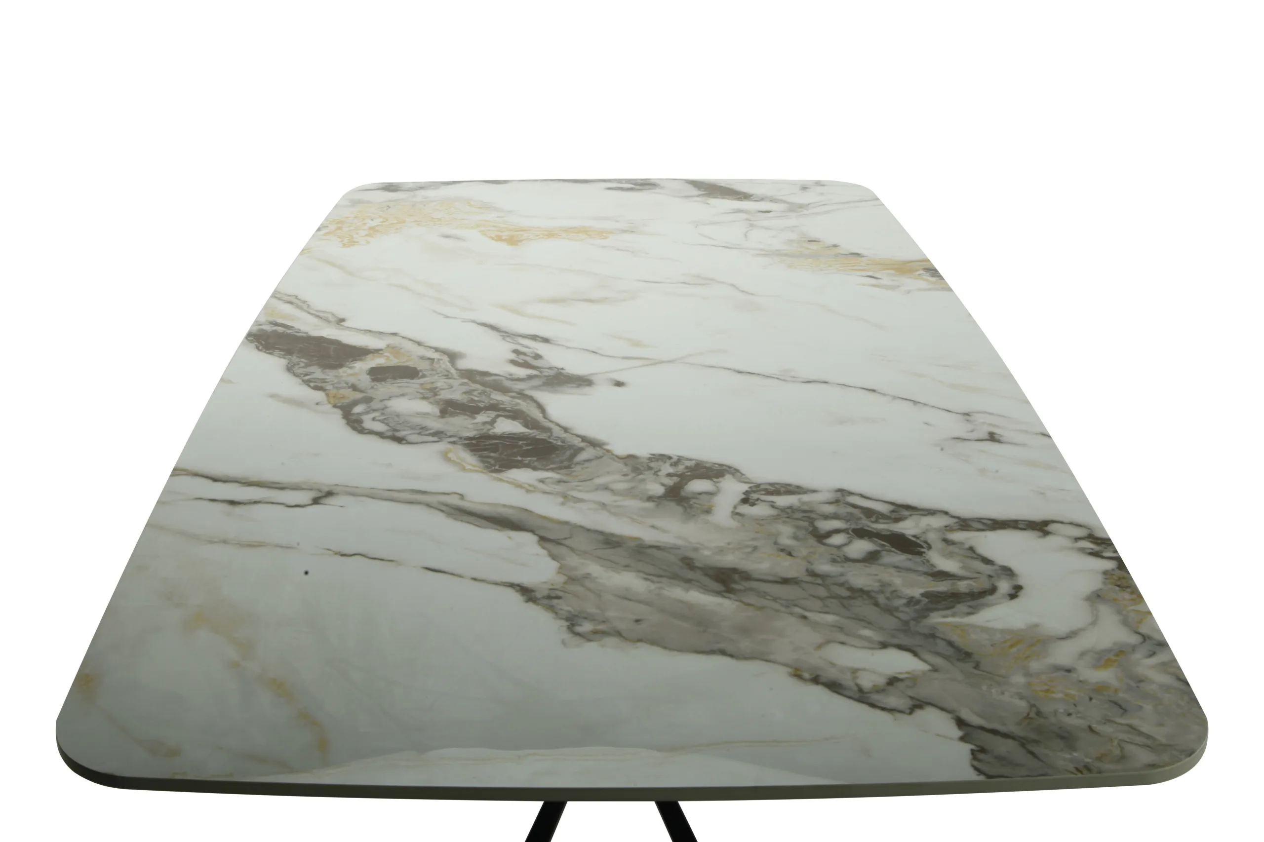 Az asztal különlegessége a magasfényű, márvány mintás szinterezett kő asztallap, amely a természetes kő eleganciáját ötvözi a modern technológia előnyeivel.