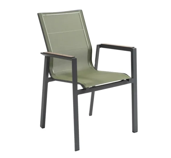 A Bahamas kültéri karfás szék a modern kültéri étkezőterek könnyed, mégis elegáns darabja, amely a letisztult design-t és a természetes hatású részleteket ötvözi. Ideális választás teraszra, kertbe vagy vendéglátóhelyek számára is.