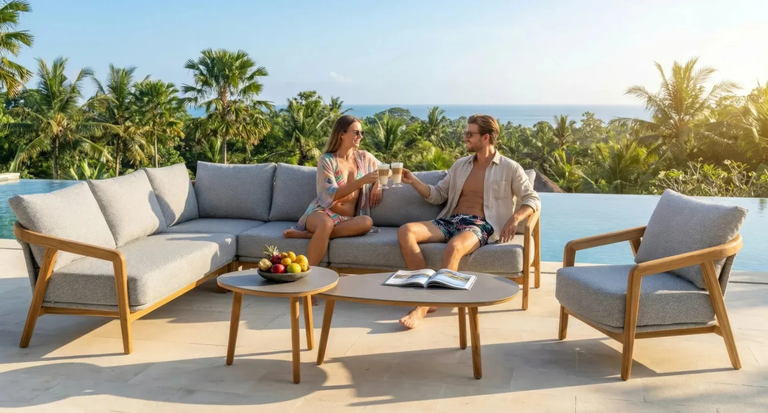 A szett minden eleme kültéri használatra készült, így hosszú távon is megbízható választás: