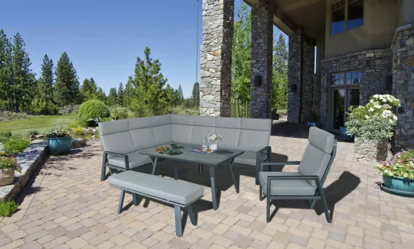 Ez a modern és sokoldalú kültéri konyhasziget tökéletes kiegészítője lehet teraszának vagy erkélyének. Az „L” alakú kialakítás tágas munkafelületet biztosít, miközben alatta praktikus tárolóhelyek találhatók a konyhai eszközök vagy az italok számára. A fonott ajtókkal ellátott szekrényrész elegáns megjelenést kölcsönöz, és elrejti a rendetlenséget.