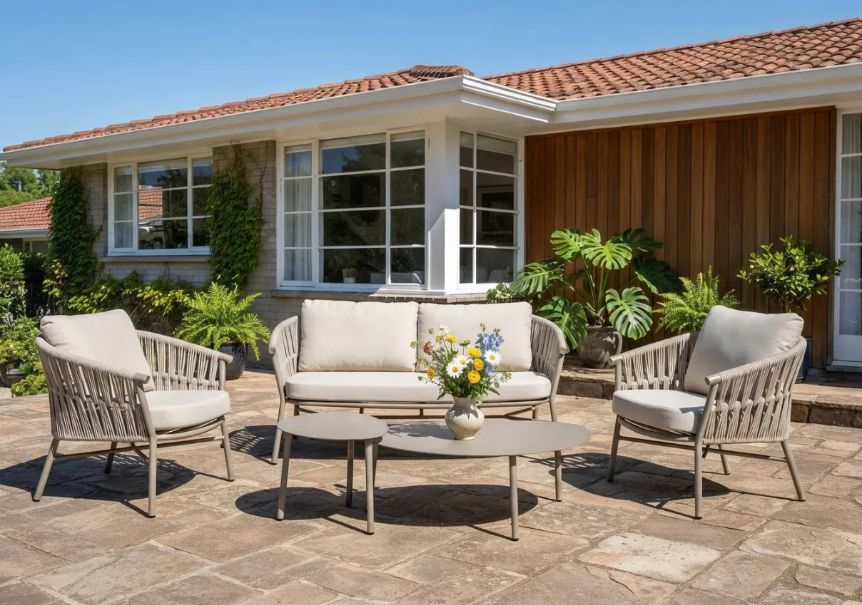 Kényelem: a puha, vízlepergető párnák és ergonomikus kialakítás kényelmes ülést biztosít hosszabb beszélgetésekhez vagy pihenéshez.