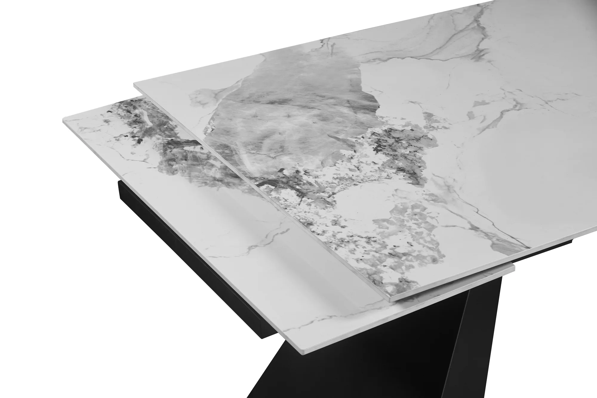 Az asztal különlegessége a kerámia asztallap, amely nemcsak elegáns megjelenést biztosít, hanem kiemelkedő ellenállóképességgel is rendelkezik.