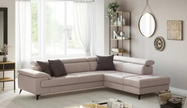 A Hudson ülőgarnitúra kényelmes, Fiocco töltetű háttámlával és kartámaszokkal, valamint állítható fejtámlával, ágyfunkcióval és ágyneműtartóval rendelkezik – minden, amire egy modern otthonban szükség lehet. Vázszerkezete keményfából, formaldehidmentes bútorlapból készül, és nem tartalmaz PVC-t vagy FCKW-t.