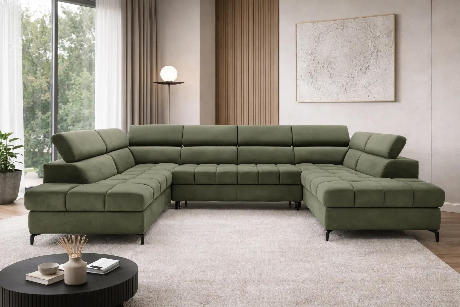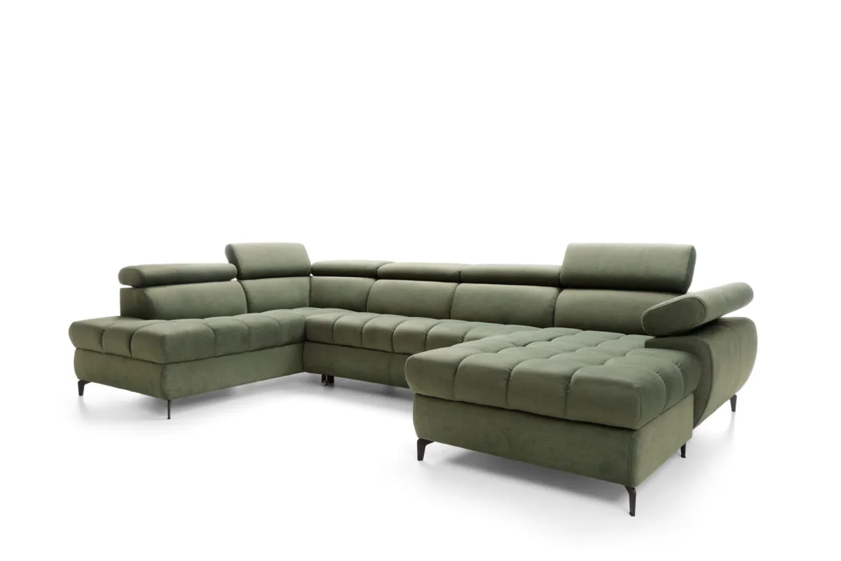 A Lugano 3 U alakú sarokgarnitúra tágas kialakításával és modern megjelenésével a nagyobb nappalik látványos központi eleme. Letisztult formavilág, karakteres díszvarrás és állítható komfort funkciók teszik egyszerre elegánssá és praktikussá.