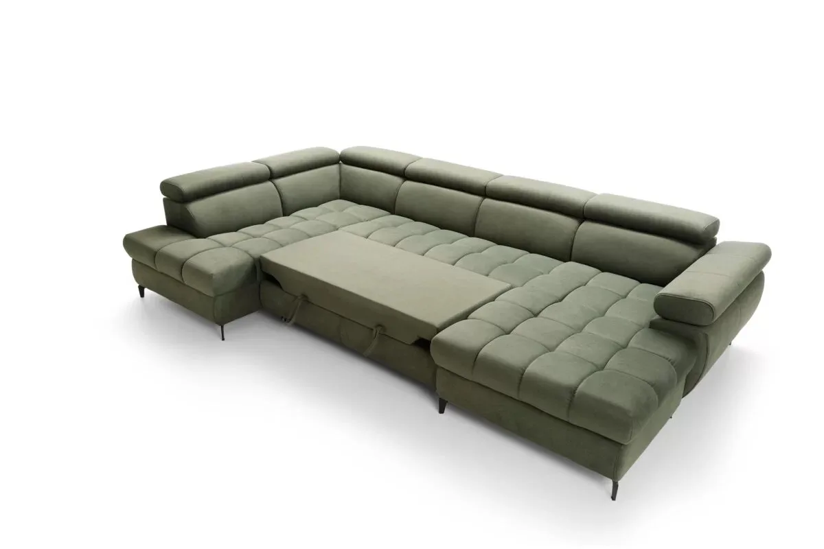 A 268 x 125 cm-es fekvőfelületnek köszönhetően vendégfogadás esetén is kényelmes alvóhelyet biztosít. A beépített ágyneműtartó diszkrét tárolási megoldást kínál, így a nappali mindig rendezett maradhat.