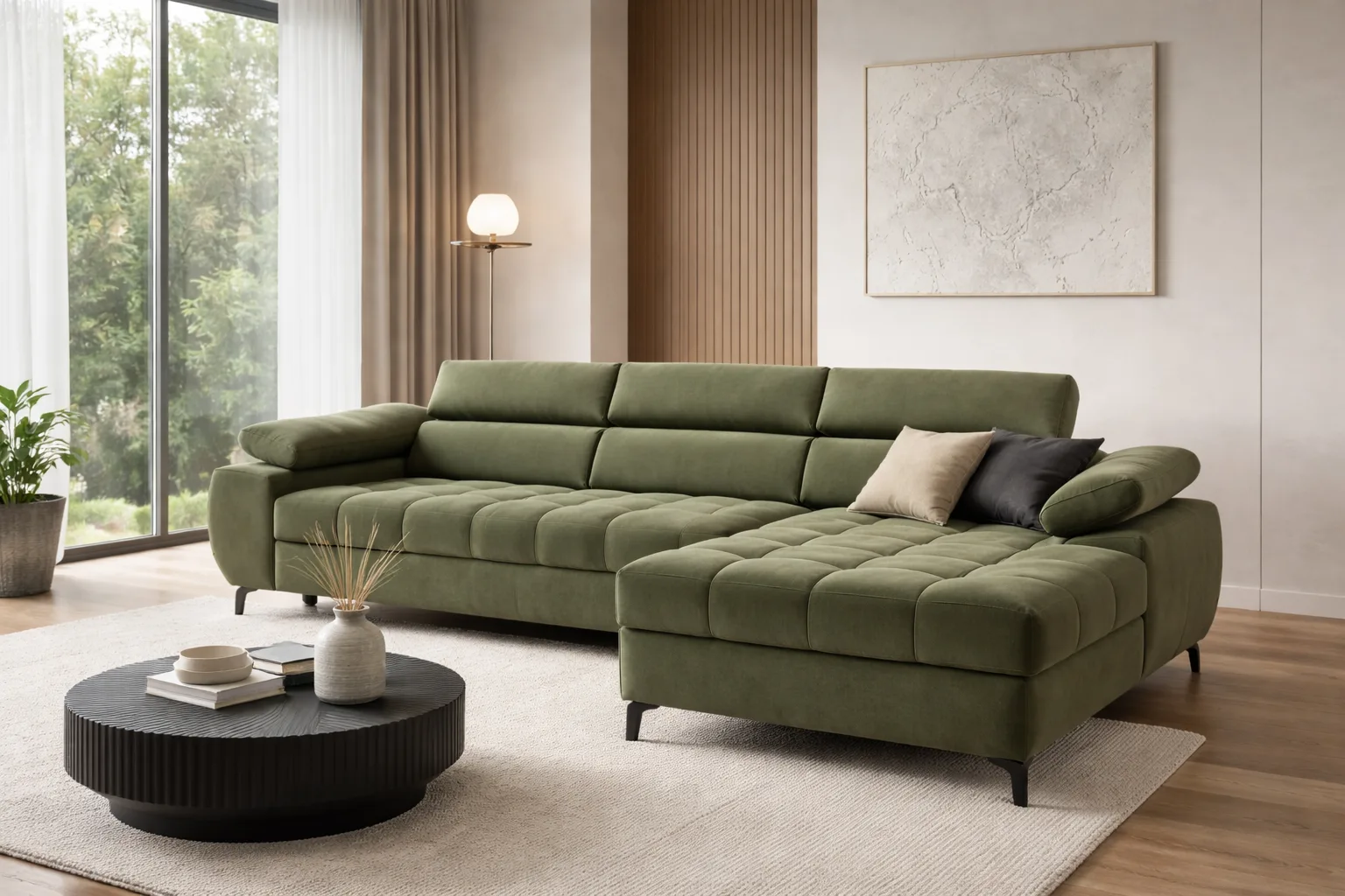 A Lugano 1 sarokgarnitúra egyszerre látványos és funkcionális megoldás, amely stílusos központja lehet bármely modern nappalinak.
