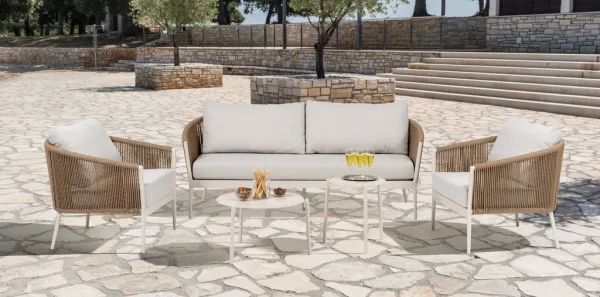 - Párnák: Természetes színű, vízlepergető párnák garantálják a maximális kényelmet, és védelmet nyújtanak az enyhe eső vagy a kiömlött folyadékok ellen.