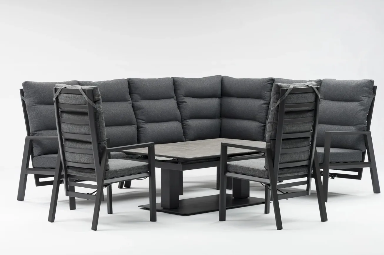 A Noel kültéri sarok étkezőszett a modern teraszok és kertek egyik legsokoldalúbb és legpraktikusabb megoldása, amely a lounge kényelmet és az étkező funkcionalitást egyesíti. Prémium kialakításának és állítható megoldásainak köszönhetően tökéletes választás mindennapi használatra és vendégek fogadására is.