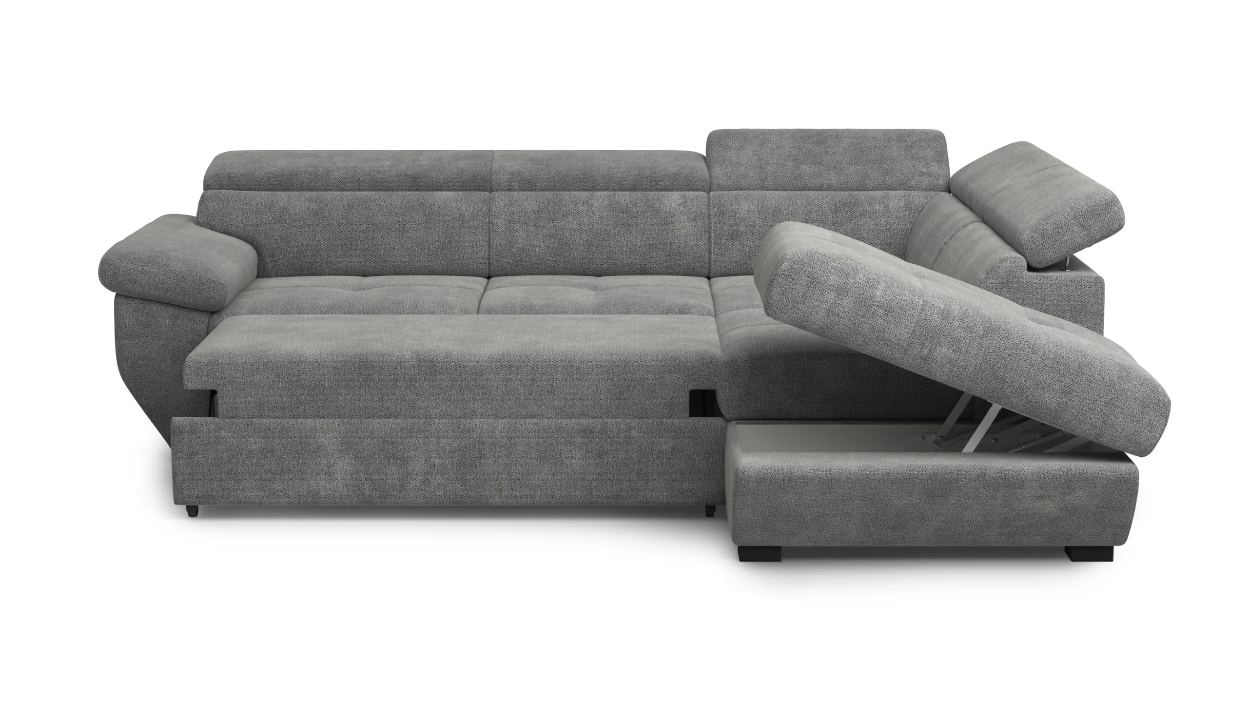 Az állítható fejtámlák lehetővé teszik a kényelmes ülő- és pihenőpozíció beállítását. Az opcionális ágyfunkció praktikus megoldást kínál vendégek fogadásához, míg az ágyneműtartó extra tárolóhelyet biztosít párnák és takarók számára.