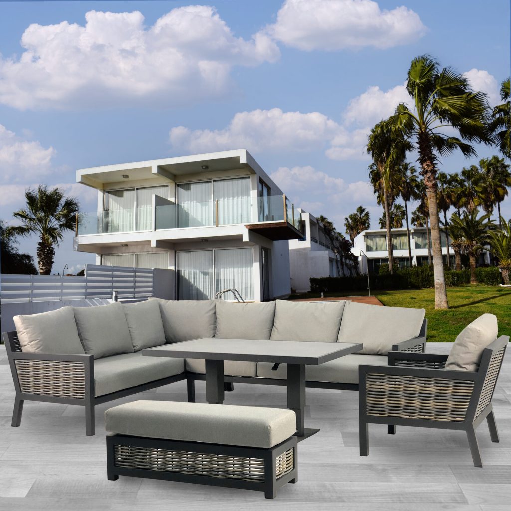 Barbados nyugágy szett, asztallal, pihenőágy bézs, antracit színben
