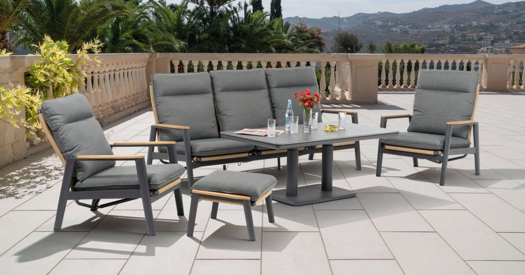 Barbados nyugágy szett, asztallal, pihenőágy bézs, antracit színben